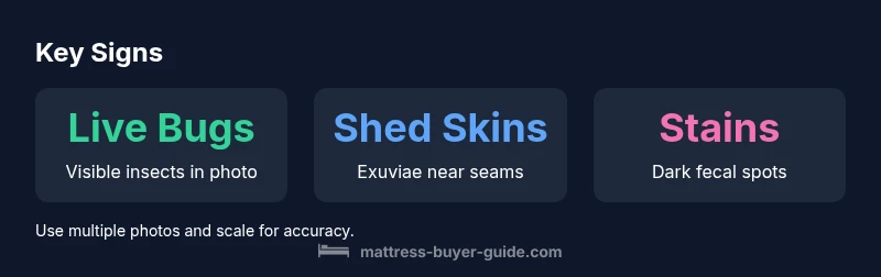 Photos of bed bugs on mattress can be a strong signal that a sleep environment is infested or at risk of infestation. In practice, images help you start the conversation with a pest professional and document observations, but a photo alone rarely confirms a full infestation. According to Mattress Buyer Guide, reliable identification relies on a combination of visible signs and in-person inspection. Look for live bugs (reddish-brown, oval and flat when unfed), shed skins, dark stains from fecal matter, and tiny white eggs clustered in tight spaces near seams and tufts.
