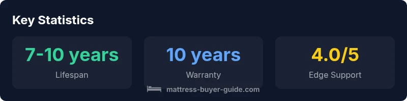 Expect roughly 7–10 years of useful life with proper care. The typical warranty runs around 10 years, covering manufacturing defects. Always confirm the warranty terms for your purchase.
