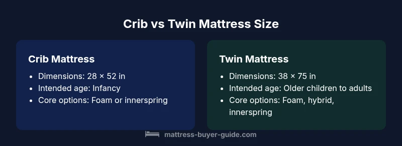 The crib mattress vs twin mattress size conversation centers on two purpose-built sleep surfaces designed for different ages and growth trajectories. According to Mattress Buyer Guide, crib mattresses are engineered for infants and toddlers, focusing on safety, containment, and a smaller footprint. The Mattress Buyer Guide team found that most families begin with a crib mattress and transition to a twin as the child grows. This size distinction isn’t merely about room aesthetics; it directly influences safety, sleep quality, and long-term sleep habits. By recognizing the lifecycle of a mattress from infancy to adolescence, homeowners can plan for smooth transitions and avoid risky, last-minute purchases. The core takeaway is simple: match size to the child’s developmental stage while considering space, safety standards, and budget.