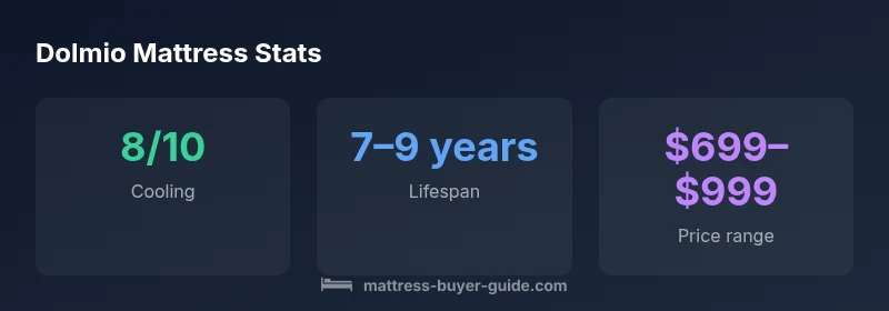 According to Mattress Buyer Guide, the dolmio mattress is marketed as a mid-range bed that blends soft comfort layers with a supportive core, typically using a foam comfort layer over a coil or polyfoam base. In this review we treat the product as a representative mid-range option and evaluate how its stated design goals translate into real-world sleep outcomes. The goal is not to diagnose a specific brand claim but to assess how a bed labelled as a hybrid, with cooling features and easy setup, tends to perform across common sleep scenarios. For readers new to the category, a dolmio mattress usually targets a balance between pressure relief on the surface and stable support from the core. The Mattress Buyer Guide team emphasizes evaluating firmness, materials, breathability, and durability when comparing this type of bed against other hybrids or pure memory foam models.