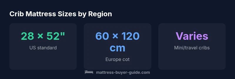 In the United States, the typical crib mattress is 28 by 52 inches, designed to fit a standard crib. However, sizes vary by region and model, and mini-cribs or travel cribs use smaller dimensions. Always measure your crib opening and check manufacturer specs before buying.