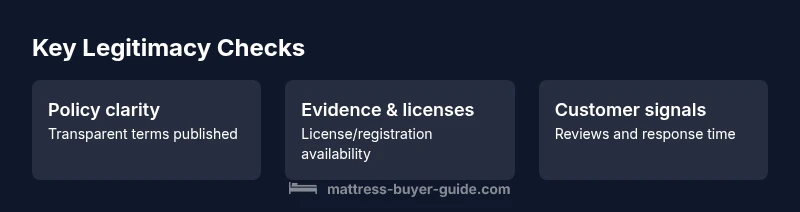 Is Mattress Warehouse legit? This quick definition highlights the signals buyers should verify: clear licensing and physical address, published return and warranty terms, and credible third‑party reviews. Our Mattress Buyer Guide evaluation emphasizes transparency, responsive customer service, and consistent policy disclosures as reliable indicators of legitimacy. For practical verification, apply a standardized checks list before you commit to a purchase, especially online.