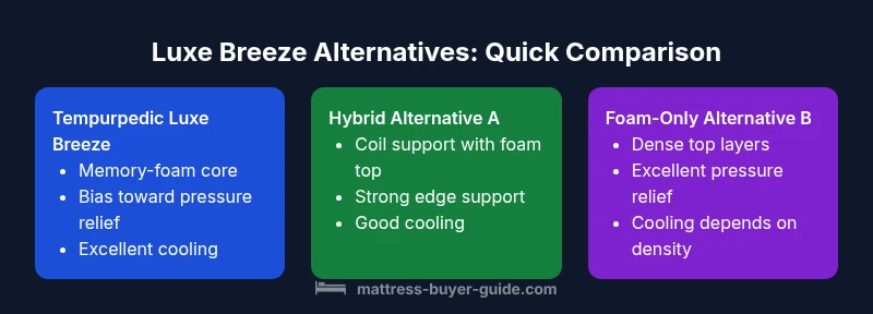 When shoppers search for a mattress comparable to tempurpedic luxe breeze, they want a bed that delivers similar pressure relief, supportive alignment, and a cooling sleep surface without paying premium prices. The Luxe Breeze line by Tempur-Pedic is known for its adaptive memory foam, targeted support zones, and breathable cover, but many households seek worthy substitutes that offer a comparable experience. According to Mattress Buyer Guide, the best alternatives balance contouring comfort with reliable durability and a strong warranty. In practice, the ideal match combines density and resilience in the foam layers, a supportive core, and a cover that facilitates airflow. In this article, we unpack the key criteria, differentiate common constructions, and provide practical tests so you can confidently pick an option that fits your sleep style, budget, and room conditions.