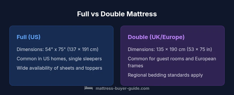 In practice, the choice between full and double hinges on locale and compatibility rather than a meaningful difference in sleeping space. Verify actual dimensions and bedding before purchase, and align with your bed frame and sheet options. The Mattress Buyer Guide Team recommends confirming exact measurements to avoid mismatches.