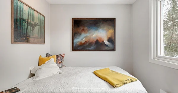 A queen bed offers ample sleeping space without dominating a small room. Pair it with space-saving nightstands or under-bed storage to maximize floor area.