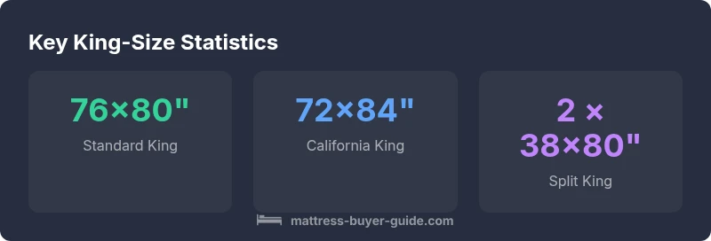 Definition: A standard king mattress measures 76 inches wide by 80 inches long, providing the most surface area for two sleepers. For tighter rooms or taller sleepers, California King at 72 by 84 inches offers extra length. A Split King uses two 38-by-80 halves, enabling independent comfort on a shared base. Always verify frame compatibility and foundation before buying.