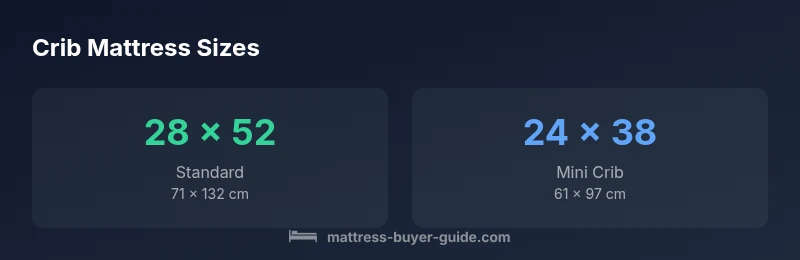 In the United States, the long-standing standard for a crib mattress is 28 inches by 52 inches. Mini cribs, used for smaller spaces or travel, typically require a 24 by 38 inch mattress. These sizes are widely supported by most sheets and protectors on the market. When choosing between standard and mini, start by measuring the interior length and width of the crib. If you own a standard crib, you’ll likely be shopping in the 28 x 52 range, whereas a compact or portable crib will lean toward 24 x 38. Always verify product specifications before purchase to avoid mismatches.