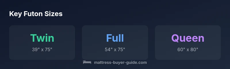 According to Mattress Buyer Guide, a futon mattress is most commonly sized like a twin (39 x 75 inches) or full/double (54 x 75 inches). Queen-size futon mattresses exist but require larger frames or modular sofas. To be sure, measure your futon frame’s inside width and length, check thickness limits, and confirm compatibility with the cover and support system. Mattress Buyer Guide emphasizes matching the frame first.