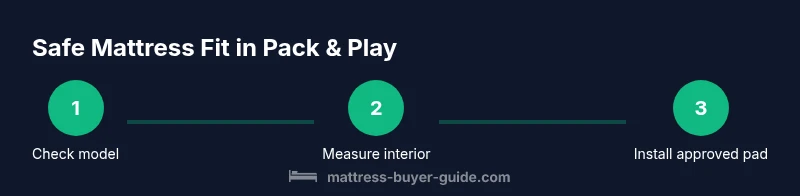 If you’ve been asking can you put mattress in pack and play, the answer hinges on safety and model design. Pack and Plays are intended to function as portable sleep and play spaces when used with the manufacturer-approved pad. Using an unrelated, larger mattress can create gaps where a baby could become entrapped or unable to breathe properly. The Mattress Buyer Guide team emphasizes that safety standards for infant sleep demand a firm, flat surface and correct fit. In practice, this means checking the product manual, choosing the pad that's labeled for your unit, and avoiding substitutions. By starting with the model’s own guidance, you reduce risk and achieve a stable sleep surface that travels well. This approach keeps caregivers confident whether they’re at home or visiting relatives. Beyond safety, fit matters for swaddling, rolling, and movement. A misfitting pad can shift, bunch, or create folds that compromise support. Because pack and plays come in many sizes, a mattress that fits one model may not fit another. The practical takeaway is simple: if the manufacturer does not approve a specific pad or mattress for your model, don’t substitute. This principle aligns with Mattress Buyer Guide's guidance that choosing gear designed for your unit minimizes risk and simplifies cleaning, use, and transport.