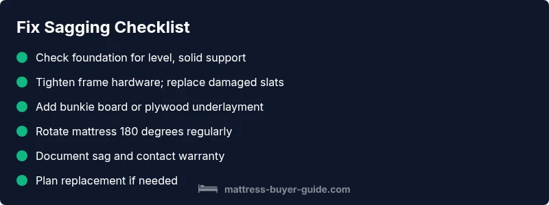 Practical guide to diagnose and fix mattress sagging after 1 month. Learn foundation checks, rotation tips, warranty steps, and options from Mattress Buyer Guide.