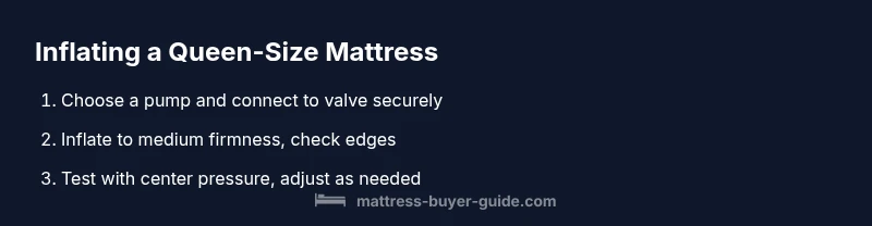 - Place the mattress on a level surface and attach the pump securely to the valve. 2) Inflate in stages, pausing to check firmness. 3) Stop when the surface has a gentle yield under pressure, with the center firm and edges stable. 4) Run a quick check by sitting at the edge and lying down; adjust if you feel excessive firmness or sag. 5) Inspect seams and valves for signs of wear. 6) Add bedding and protector to protect the surface from moisture and oils. Following these checks minimizes leaks and helps you get a comfortable night's sleep.