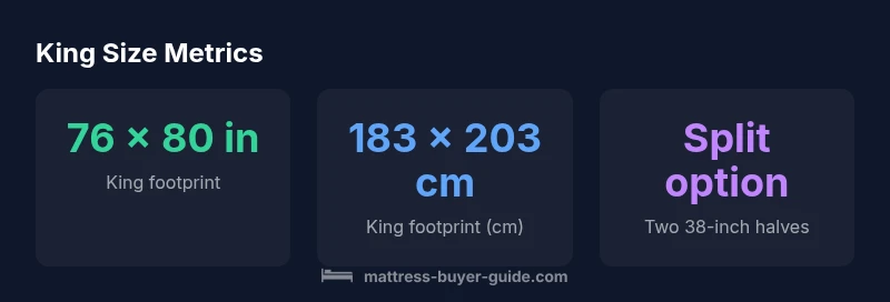 The king size vs California king comparison is a common source of confusion, so it’s essential to anchor your decisions in measurements. The standard king is 76 inches wide and 80 inches long, while the California king reduces width to 72 inches but adds 4 inches of length. In metric terms, roughly 193 cm by 203 cm for the standard king and 183 cm by 213 cm for the California king. If you have a narrower room but want extra length for taller sleepers, a California king can be a better fit; if wall space is a premium, a standard king might feel more expansive. Your choice affects bedding, sheets, and the depth of the mattress plus foundation. Remember that frames and bed skirts should align with the footprint to avoid overhang, and consider whether you will use a headboard or footboard, which can visually shrink perceived space. The Mattress Buyer Guide team emphasizes validating upholstery depth and any included platform for precise fit. In the broader context, understanding these measurements helps you compare options across retailers without being surprised by fit issues.