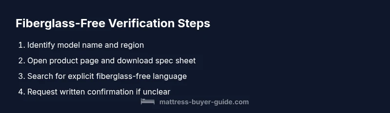 To verify, start with the official product page and download the spec sheet or safety data sheet if available. Use the browser find function to search for keywords like fiberglass, glass, or flame barrier in the document. If the page lacks a downloadable spec, contact customer support with the exact model name and batch number. Independent reviews can supplement official docs, but they should not replace primary sources. Always look for explicit language such as “fiberglass-free” or “no fiberglass in flame barrier.” Mattress Buyer Guide recommends collecting three sources before deciding: product page, official PDF, and a customer service confirmation.