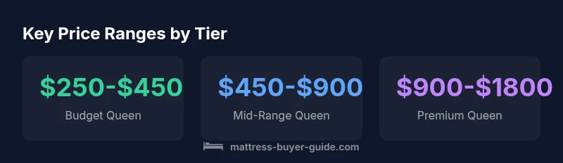 Queen bed price typically ranges from about $250 to $2,000, depending on frame material, mattress type, and added features. In 2026, budget models start around $250–$450, mid-range sets run $450–$900, and premium memory foam, hybrid, or modular systems often exceed $900, with luxury brands climbing well over $1,500. Prices vary by retailer and geographic region.