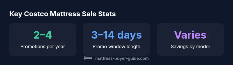 Promotions at Costco aren’t tied to a single nationwide calendar. Instead, they mirror Costco’s broader merchandising approach: limited-time offers, seasonal promotions, and member-facing events. Mattress promotions typically surface when Costco aims to drive stock turnover, introduce new models, or align with big shopping weekends. According to Mattress Buyer Guide analysis, the timing is influenced by supply cycles, regional demand, and marketing calendars rather than a universal national date. For shoppers, this means you should expect multiple windows across the year, with more consistent activity around major holidays and midseason resets. The key takeaway is to watch for the patterns, not a fixed date, and to prepare by following Costco’s online deal pages and newsletters. when is costco mattress sale appears most reliably during these windows, but regional calendars matter.