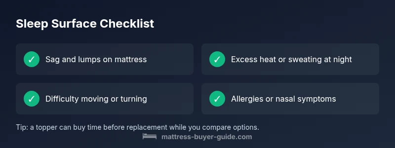 - Worsening back, neck, or shoulder discomfort after sleeping on the mattress If several of these signs are present, it’s a strong signal that the old mattress is no longer providing optimal support or temperature control. Mattress Buyer Guide recommends evaluating both comfort and health outcomes when assessing a mattress’s condition.